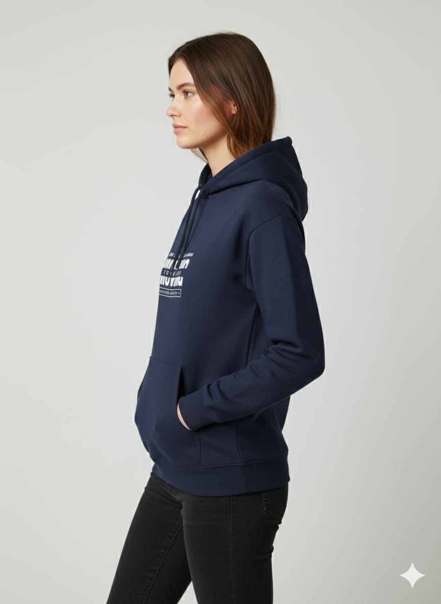 Crafted for lasting comfort, this pullover is made from a substantial cotton-blend fleece that provides warmth without the bulk. The relaxed fit ensures it layers perfectly over anything, making it a versatile staple for your wardrobe. The sharp, typographic design on the rich navy fabric creates a look that’s both modern and meaningful.